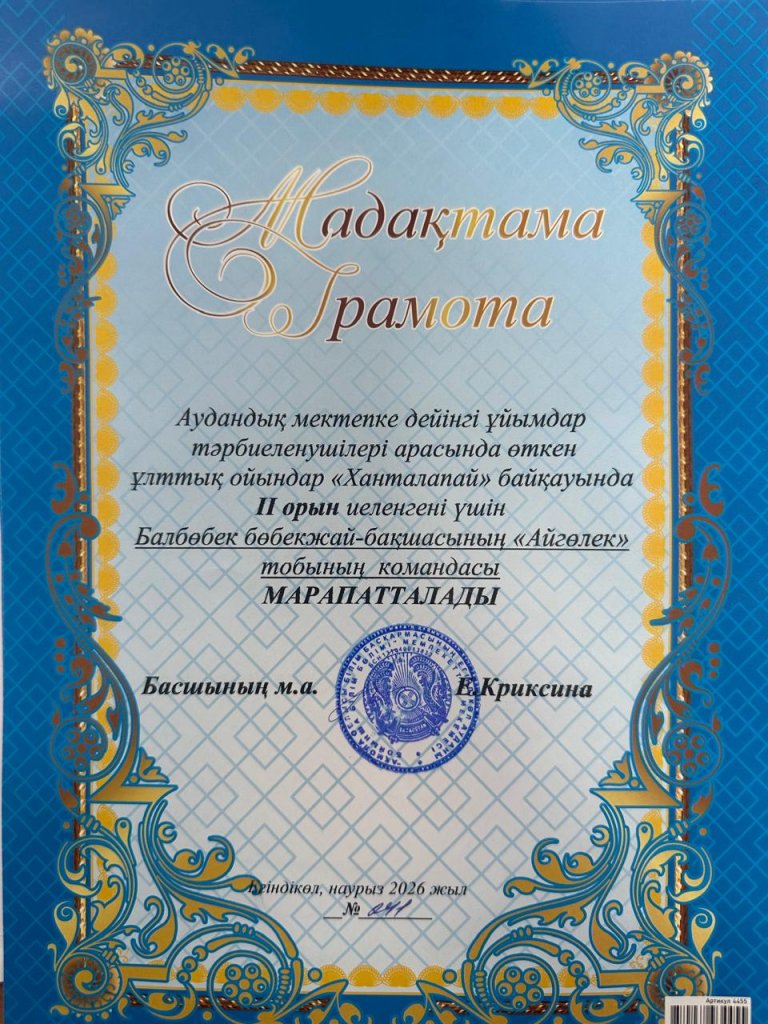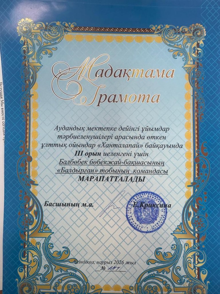 «Балбөбек» балабақшасының тәрбиеленушілері аудандық «Ханталапай» ұлттық ойындар байқауына қатысып, жақсы нәтижелер көрсетті 💪